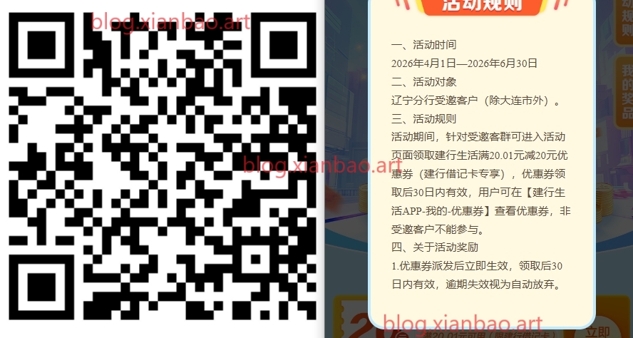 建行辽宁受邀20亓生活优惠券