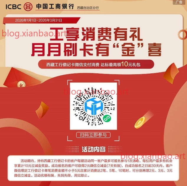 工行西藏月月刷立减金
