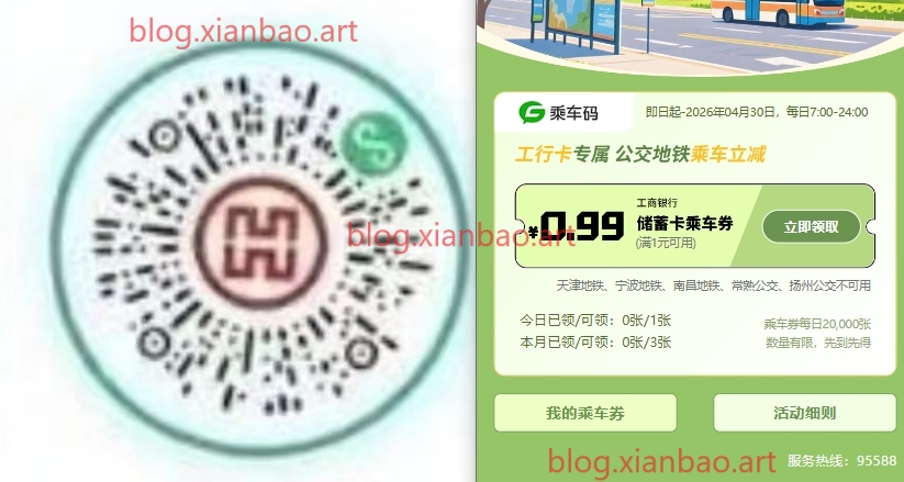 工行公交地铁券:#小程序:工享好礼,每天1次,每月限3次,有效期3天 少部分地区不能用,页面还有深圳、山西出行券