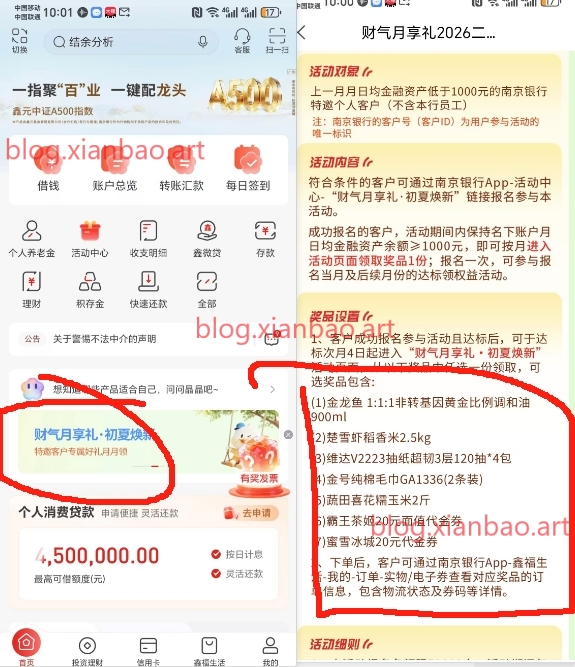 南京银行app首页或活动中心找到如图报名,需上一月月日均低于1000可以报名(参加过每月20立减金的可以先取走,下月再报名),成功报名,保持名下账户月日均>1000,放卡余额即可,次月4号可领