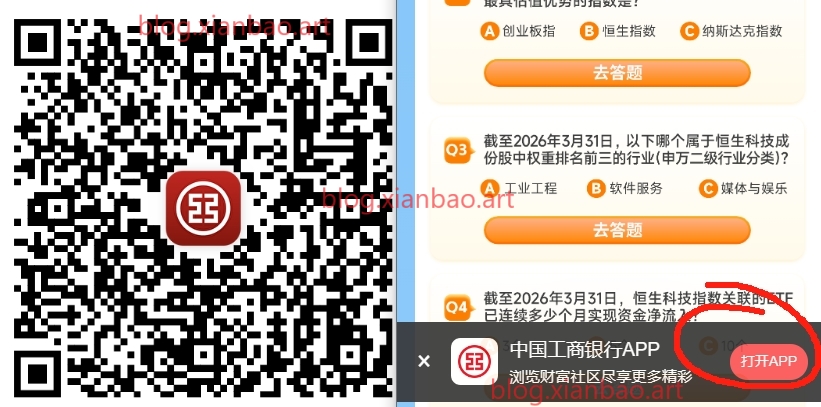 微xin识别,跳转工行下拉找到如图,点进5个答题,答案分别为:abbcb ,火爆一直点即可。