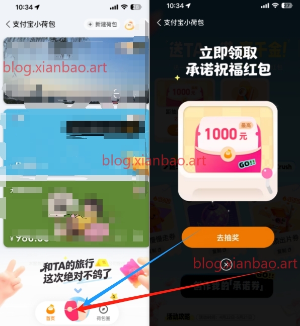 支付宝搜:小荷包,之前开过去,没有就忽略,横幅或底部中间送承诺,转入0.1,送给小号就行,测试抽到2+