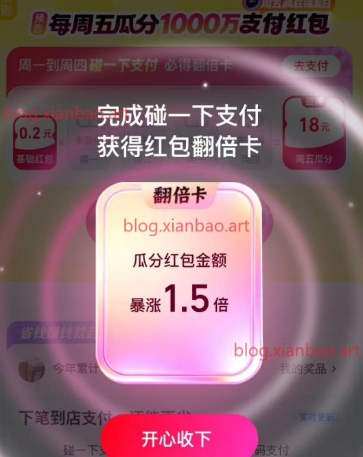 zfb支付有礼累计瓜分碰一下券