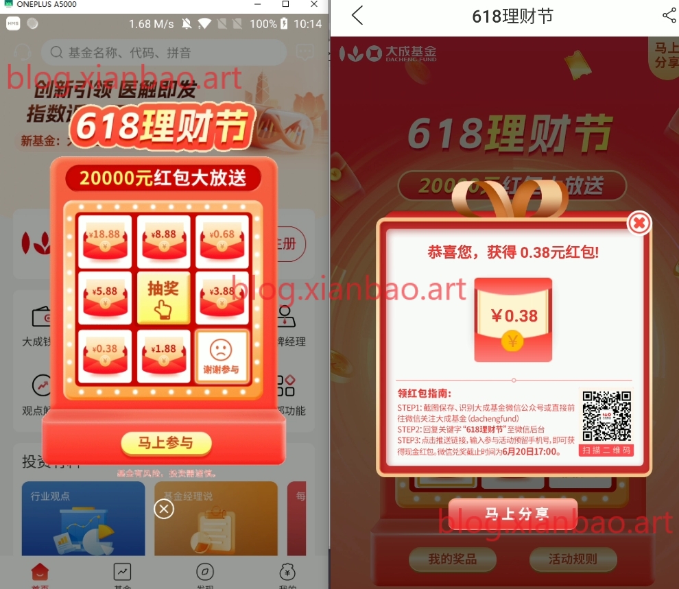 有开通过大成基金的老用户,打开app就会出现弹窗,登录后直接抽奖即可!不弹窗的左上角头像->活动中心进入->抽中红包根据页面提示去兑换即可